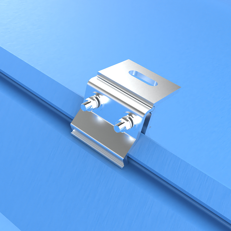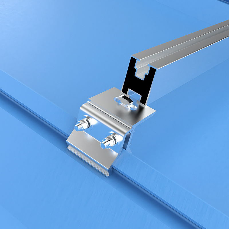 การติดตั้ง PV หลังคาโลหะเป็นระบบการติดตั้งที่ออกแบบมาสำหรับหลังคาโลหะเช่นกระเบื้องเหล็กสีและแผ่นชุบสังกะสี มันใช้เทคโนโลยีการตรึงแบบที่ไม่ยึดติดประเภทแคลมป์เพื่อหลีกเลี่ยงการขุดเจาะเพื่อสร้างความเสียหายต่อโครงสร้างหลังคาและชั้นต่อต้านการกัดกร่อน ตัวยึดทำจากโลหะผสมอลูมิเนียมที่มีความแข็งแรงสูงหรือเหล็กชุบสังกะสีแบบจุ่มร้อนซึ่งทนต่อการกัดกร่อนและน้ำหนักเบาและเหมาะสำหรับแผ่นโลหะชนิดต่าง ๆ เช่นขอบล็อกสี่เหลี่ยมคางหมูและแนวตั้ง การออกแบบแบบแยกส่วนช่วยให้การติดตั้งอย่างรวดเร็วรองรับการปรับความเอียงของส่วนประกอบและการจัดเรียงที่ยืดหยุ่นและเหมาะสำหรับฉากหลังคาโลหะขนาดใหญ่เช่นโรงงานอุตสาหกรรมและเชิงพาณิชย์และคลังสินค้าโดยคำนึงถึงประสิทธิภาพการผลิตพลังงานแสงอาทิตย์และความต้องการการป้องกันระยะยาวของหลังคา